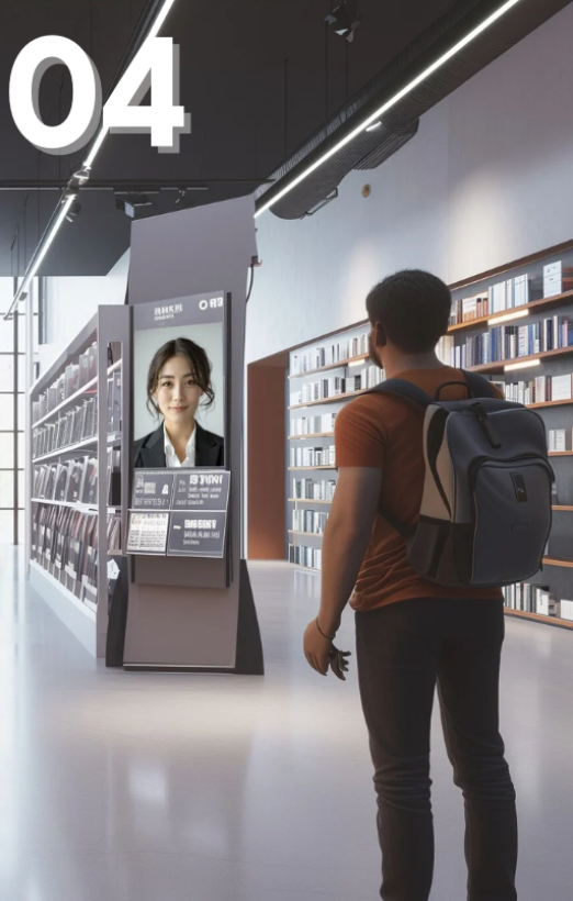 店頭業務の多い書店で、スタッフの労務軽減や人員不足をサポート。膨大な店頭書籍の中から顧客の探す商品や、おすすめの商品を素早く、手軽に見つけるためのお手伝いをコンシェルジュが行います。