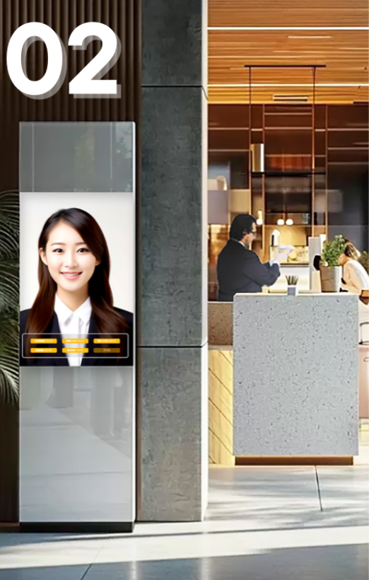 MISEdemoコンシェルジュは、施設案内・サービス紹介・商品の魅力などを、来店者が自分のペースでストレスなく得られるバーチャルヒューマンが接客するタッチ式サイネージです。